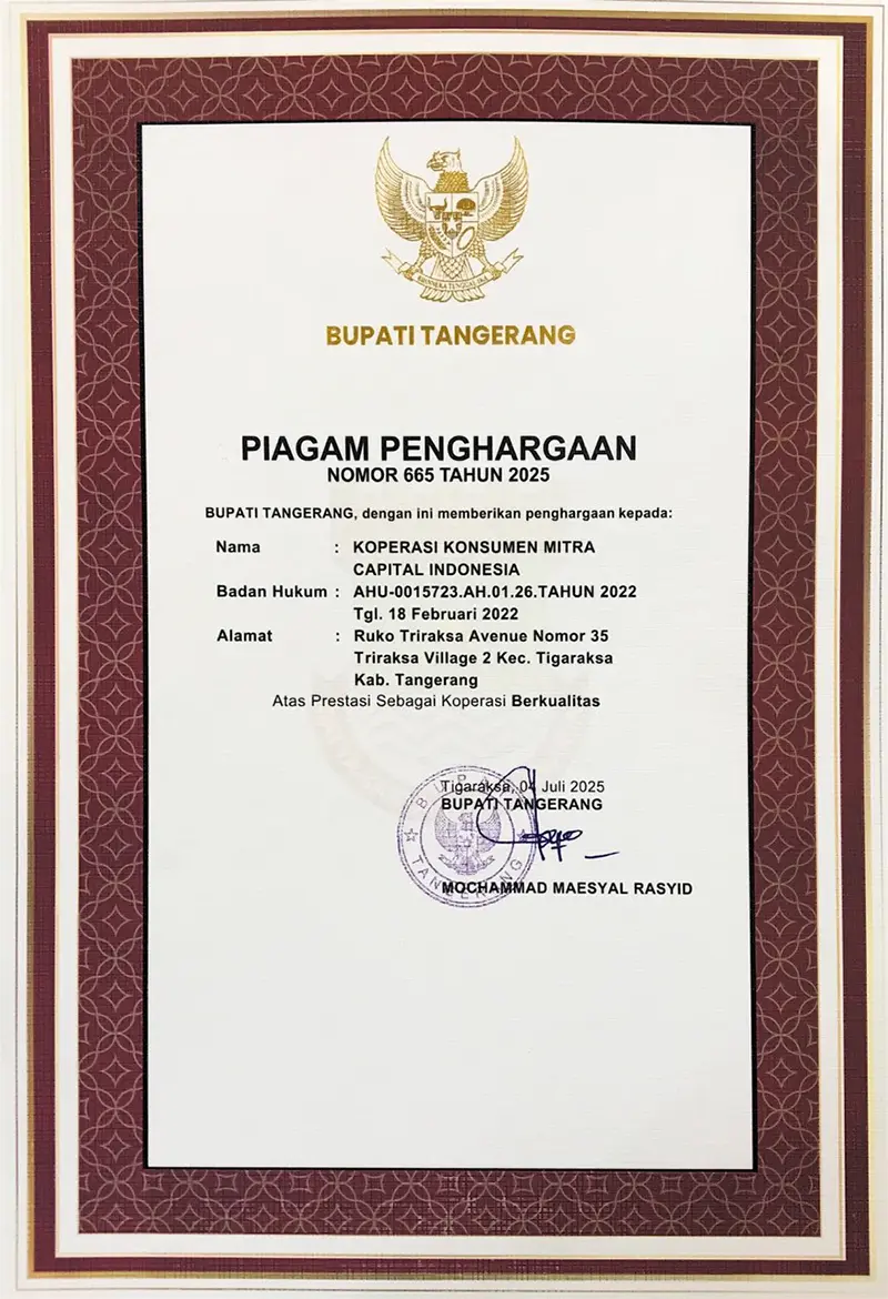 Didirikan oleh sekelompok pengusaha muda dan profesional dari berbagai latar belakang, Koperasi Mitra Capital Indonesia (MCI) hadir dengan visi menjadi mitra andalan sekaligus pendana strategis bagi UMKM Indonesia. MCI berkomitmen untuk menjalankan berbagai kegiatan usaha yang berkelanjutan dan bernilai tambah, tidak hanya untuk meningkatkan kesejahteraan anggota koperasi, tetapi juga untuk mendorong terciptanya lapangan kerja baru, memperkuat rantai pasok, serta memberikan dampak positif bagi masyarakat luas.